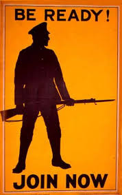 This WW1 poster is effective due to it's limited colour, creating a bold impact. The linguistic decision to us an exclamatory statement, followed by an imperative creates an emergency to the instructions. As a propaganda poster this is not subtle. Combined with the black silhouette on orange- a colour connected to warning this poster has a very clear message.